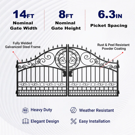 The Greatbear Wrought Iron Fence and Driveway Gates is the perfect addition to your home. Not only does it add a touch of luxury and romance to your property, it also provides a practical barrier to keep your space safe and secure. The wrought iron is both ductile and durable, making it a great investment for your home. The gate is also affordable and high quality, so you know you're getting a great product. With the Greatbear Wrought Iron Fence and Driveway Gates, you can easily separate your private space from the outside world and make your property look more beautiful and inviting. It's the perfect choice for homeowners, landscapers, masons, gardeners, and swimming pool builders. Invest in the Greatbear Wrought Iron Fence and Driveway Gates and add value and curb appeal to your property.