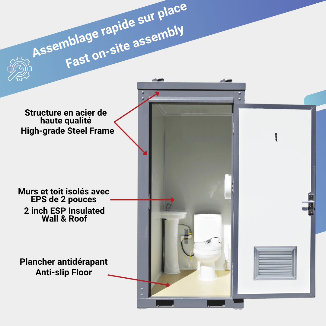 This Bastone Portable Restroom with a Sink is the perfect solution for any outdoor event. With a toilet, sink, light, extractor, and paper towel holder, you can be sure that your guests will have a comfortable and clean environment to use. The modern design and perfect finishing touches make it a popular choice for intimate wedding parties and other outdoor events. Enjoy the convenience of having a restroom that is easy to set up and take down, and be sure to make a lasting impression on your guests.