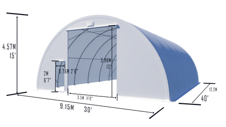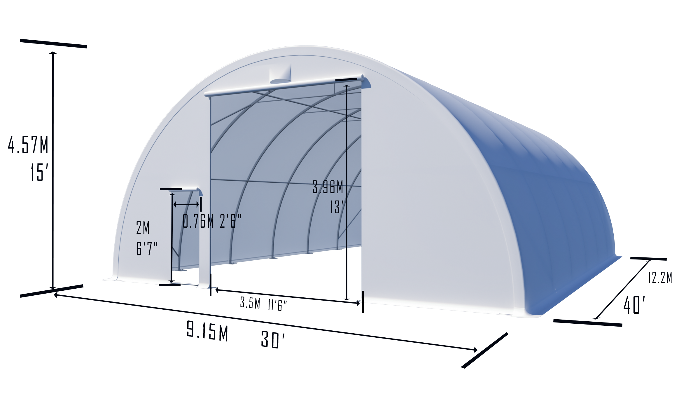 The Gold Mountain Single Truss Arch Storage Shelter W30’xL40’xH15’ (304015) is the perfect choice for anyone looking for a reliable and durable storage solution. This truss construction storage shelter is designed to be resistant towards water, UV, and fading, and can last up to 7-10 years under the right conditions. It features a freestanding style, mechanical doors at both ends, and a huge capacity for trucks, automobiles, and more bulk storage. This storage shelter will protect your belongings from wind, snow, and rain, and has a CSA/TUV Snow Rating Test Report and SGS fabric Certificate to guarantee its quality. Whether you need to store equipment, materials, or recreational items, the Gold Mountain Single Truss Arch Storage Shelter W30’xL40’xH15’ is the perfect choice.