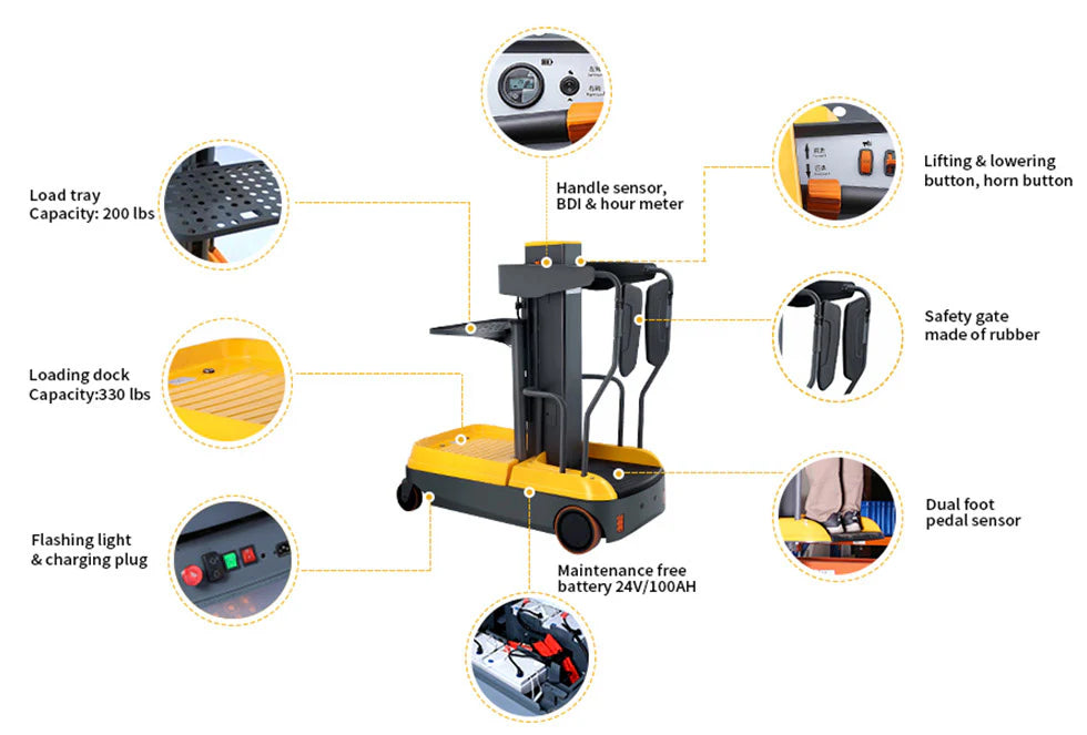 - Extended Reach in Narrow Spaces – 118" lift height with a 29.5" slim body for tight aisles.