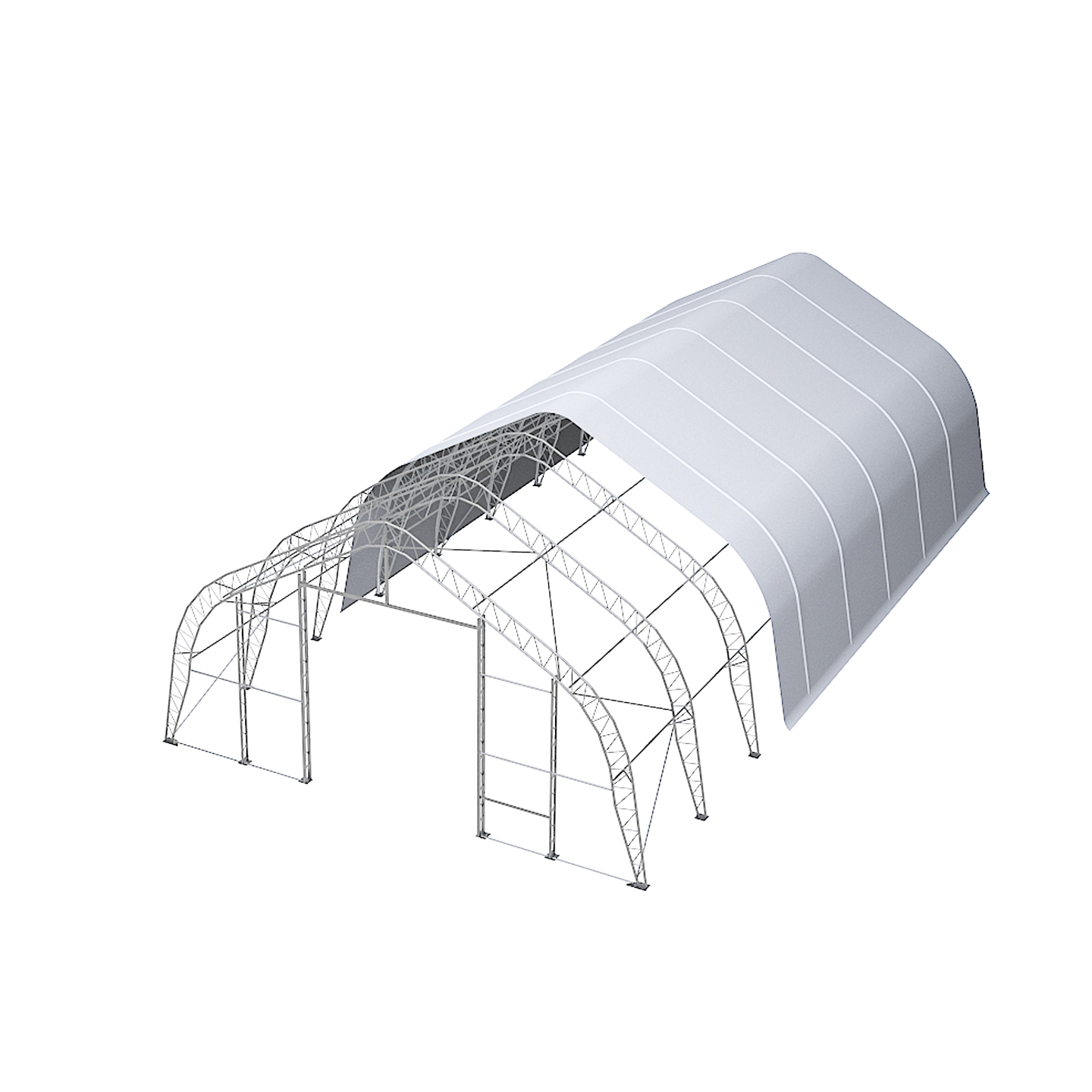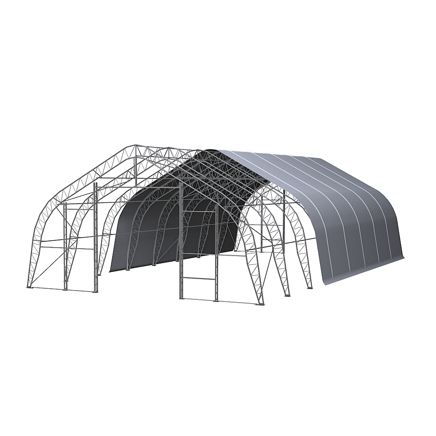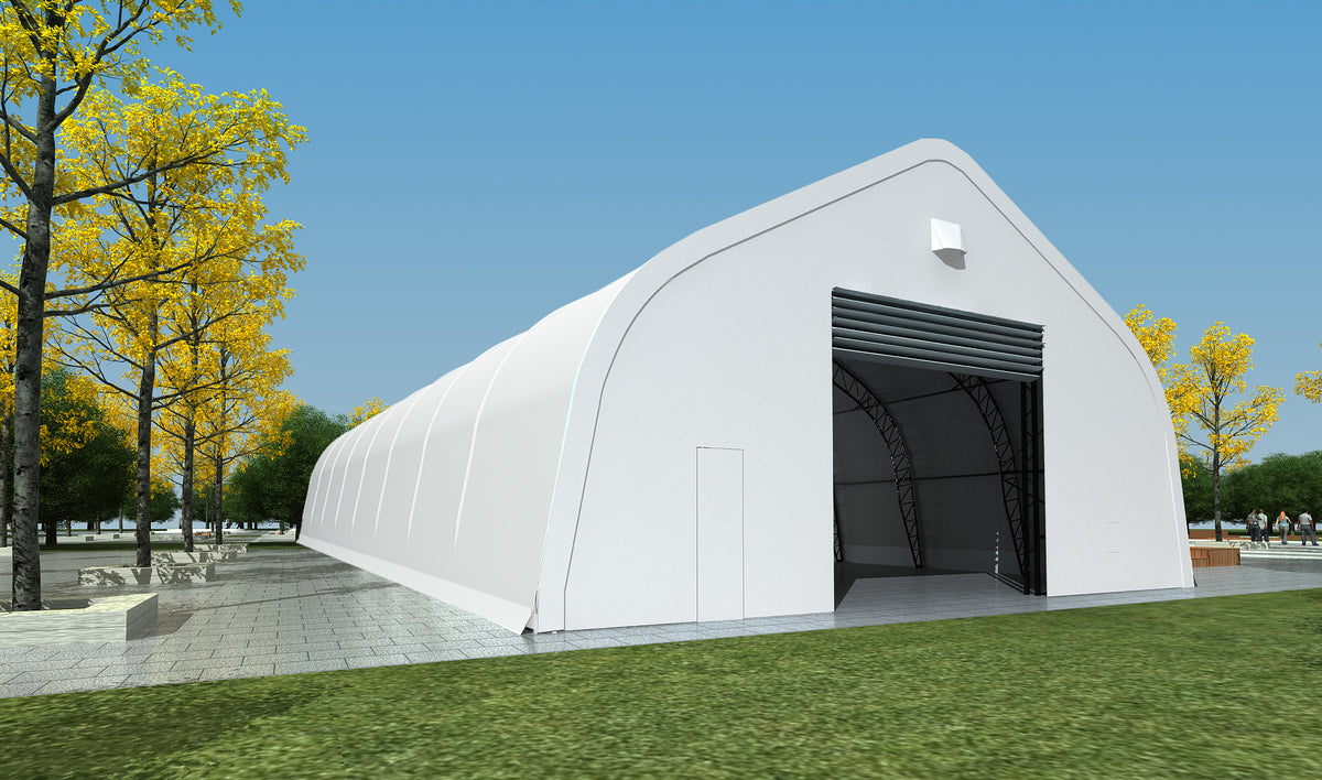 Introducing the Double Truss Peak M Model Storage Shelter W40'×L60'×H22' (406022), a heavy-duty mid-size shelter engineered for Canadian climates. Its reinforced double truss peak frame ensures durability, withstanding wind loads up to 1.35 kN/m² and snow loads up to 2.5 kN/m².