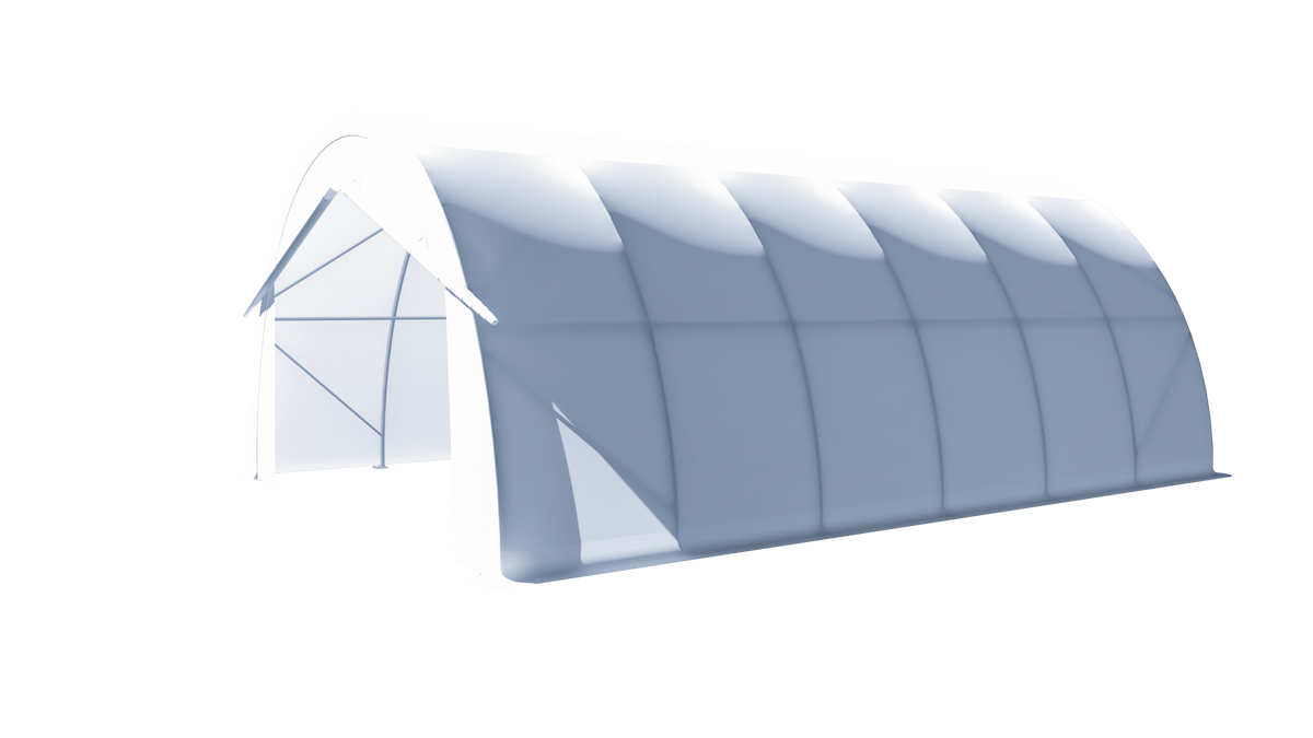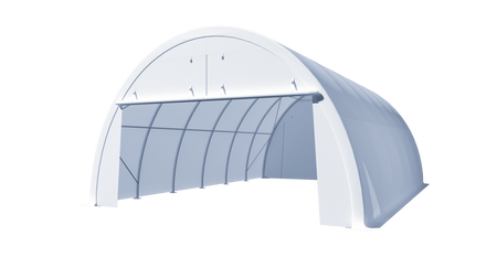 The Gold Mountain Single Truss Round Storage Shelter-W20'xL30'xH12' (203012) with 5ft arch spacing and 420g PVC fabric is a compact yet durable solution for various storage needs. Designed with a galvanized steel frame, this shelter is built to resist rust and corrosion, ensuring long-lasting protection in different weather conditions. The 420g PVC fabric provides excellent UV resistance, fire retardancy, and water protection, making it suitable for safeguarding your valuable items. The round structure enhances wind resistance, while the 5ft arch spacing adds stability. With its simple yet sturdy design, the shelter is easy to assemble and dismantle. The Gold Mountain Single Truss Round Storage Shelter-W20'xL30'xH12' offers a practical and cost-effective solution for reliable storage and protection.