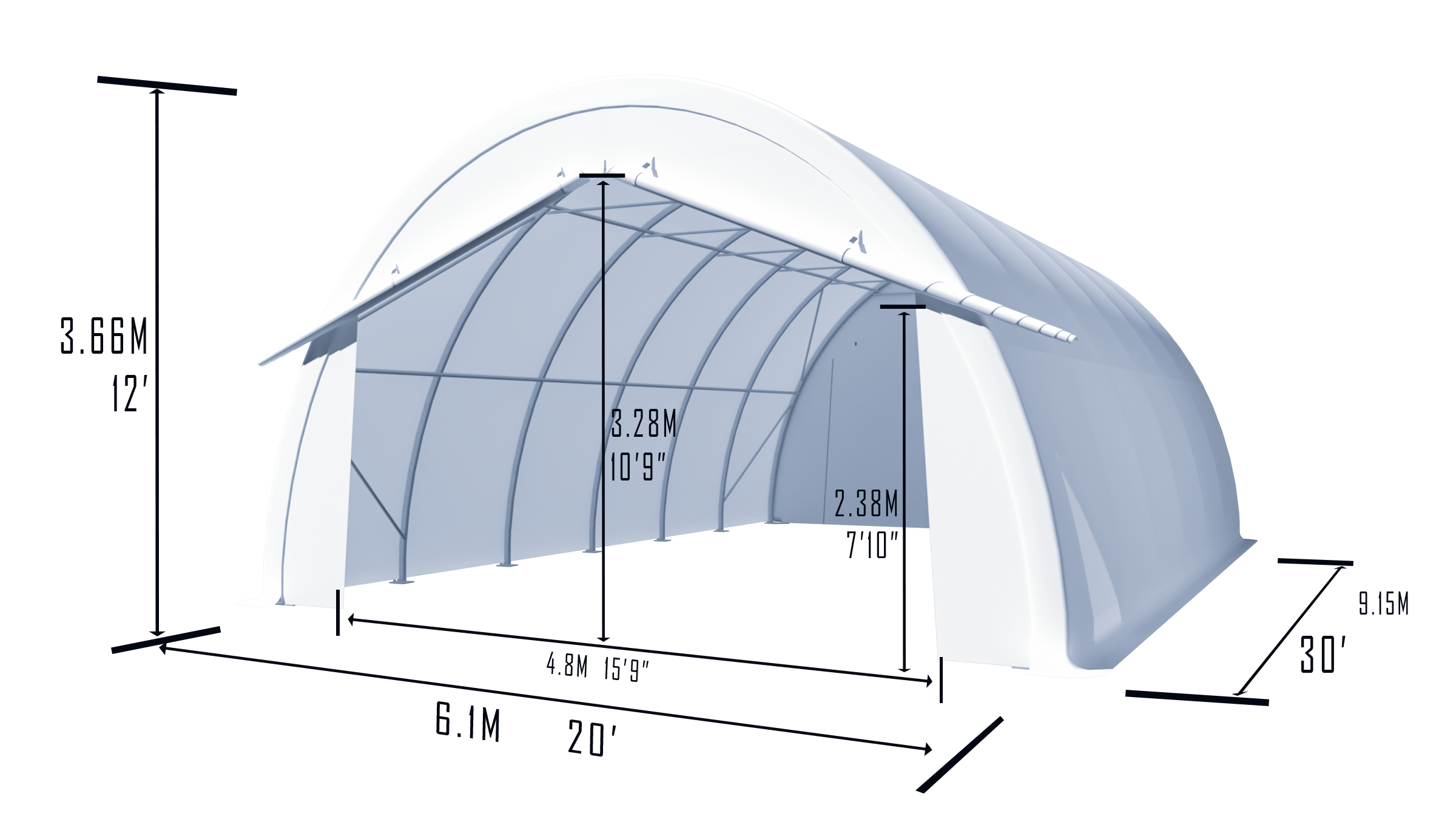 6.1m*9.15m*3.66m/20'*30'*12' |