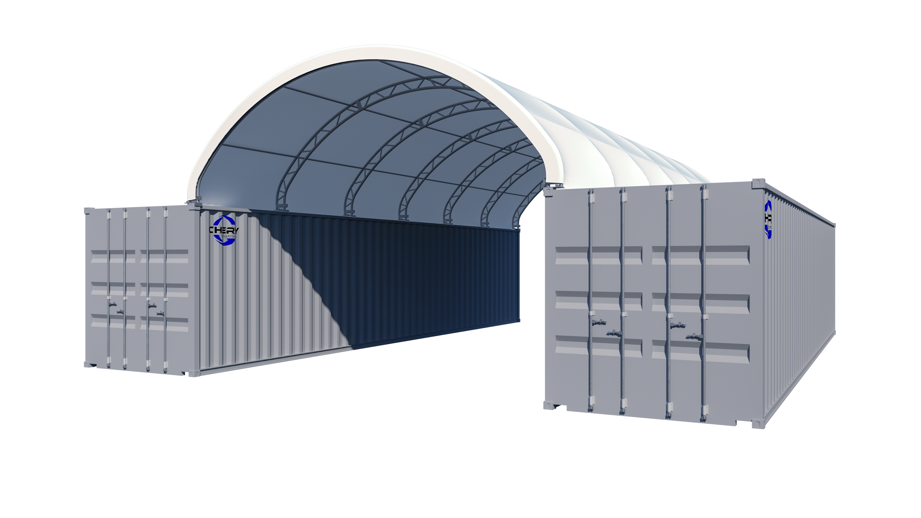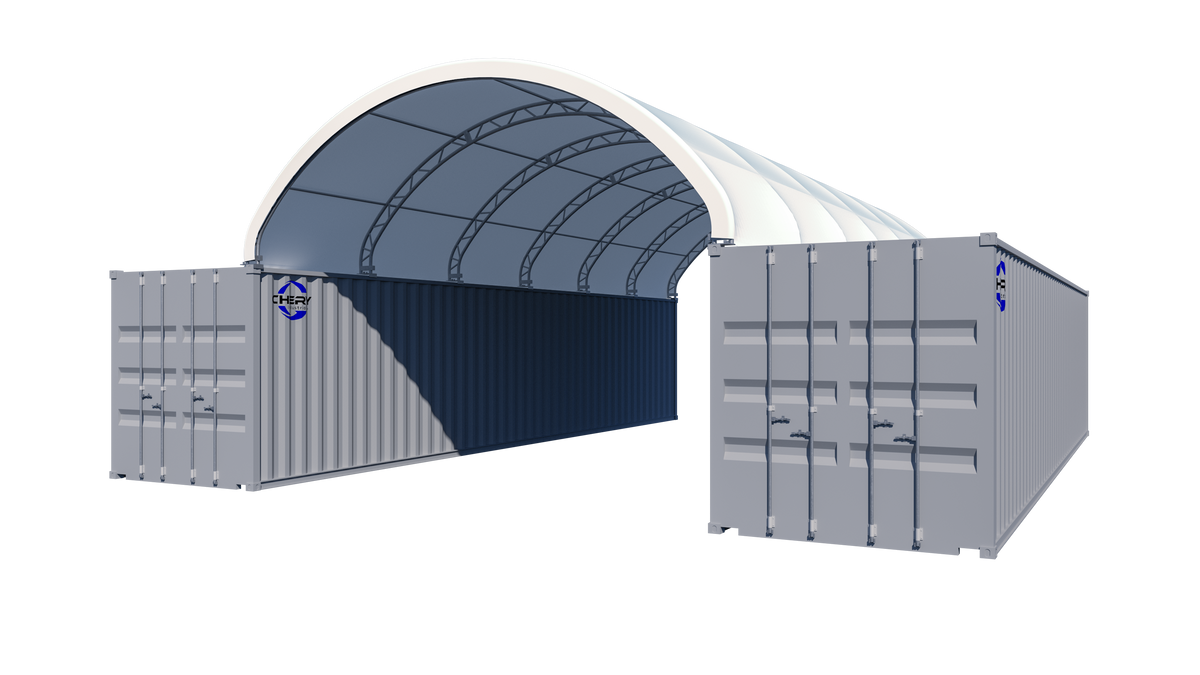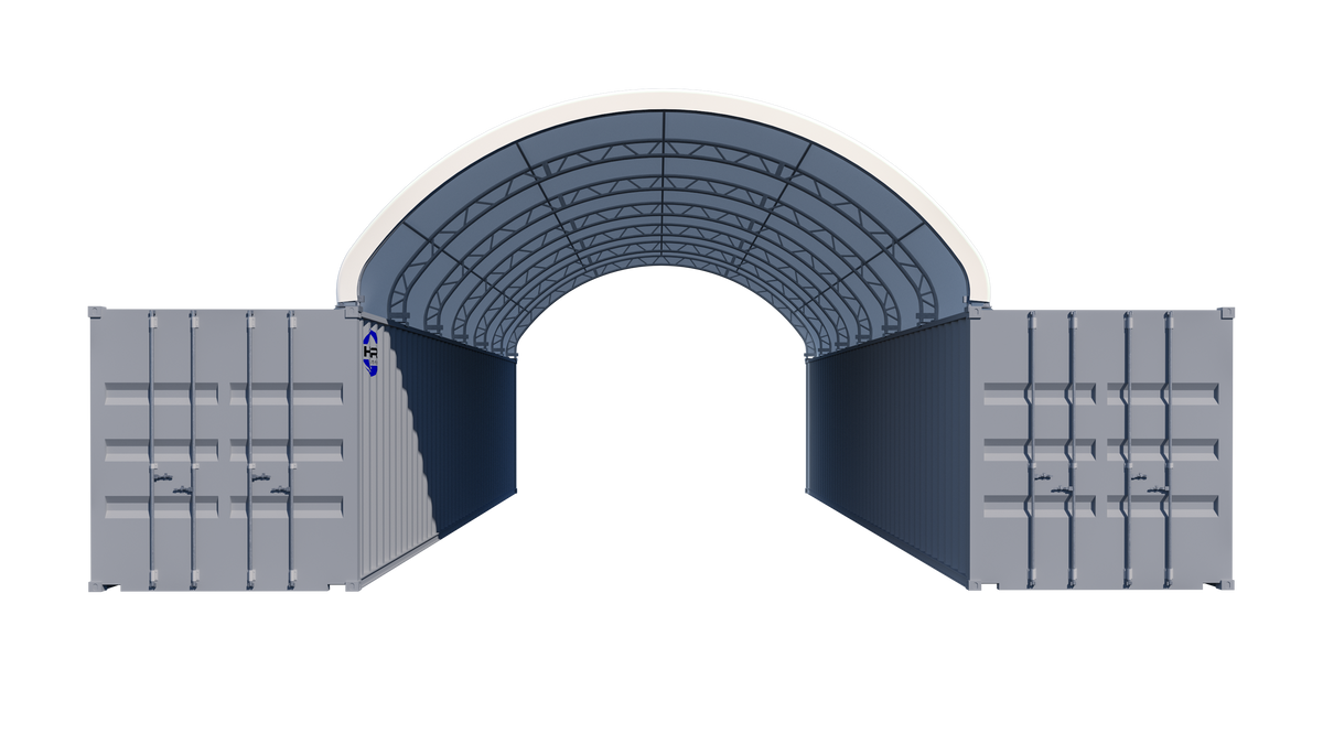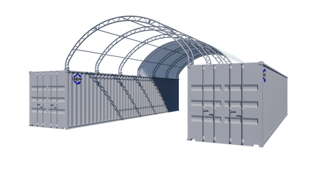The Double Truss Shipping Container Canopy Shelter 20'x40'x7' - Model M with 1.2m arch spacing is designed to cover a larger area, making it ideal for extended storage needs. Featuring a sturdy galvanized steel frame, this shelter resists rust and corrosion for enhanced durability. The 500g PVC fabric offers excellent protection against UV rays, fire, and water, ensuring the safety of stored items. With its double truss design and larger coverage area, this shelter provides a practical solution for protecting vehicles, machinery, or other valuable assets.