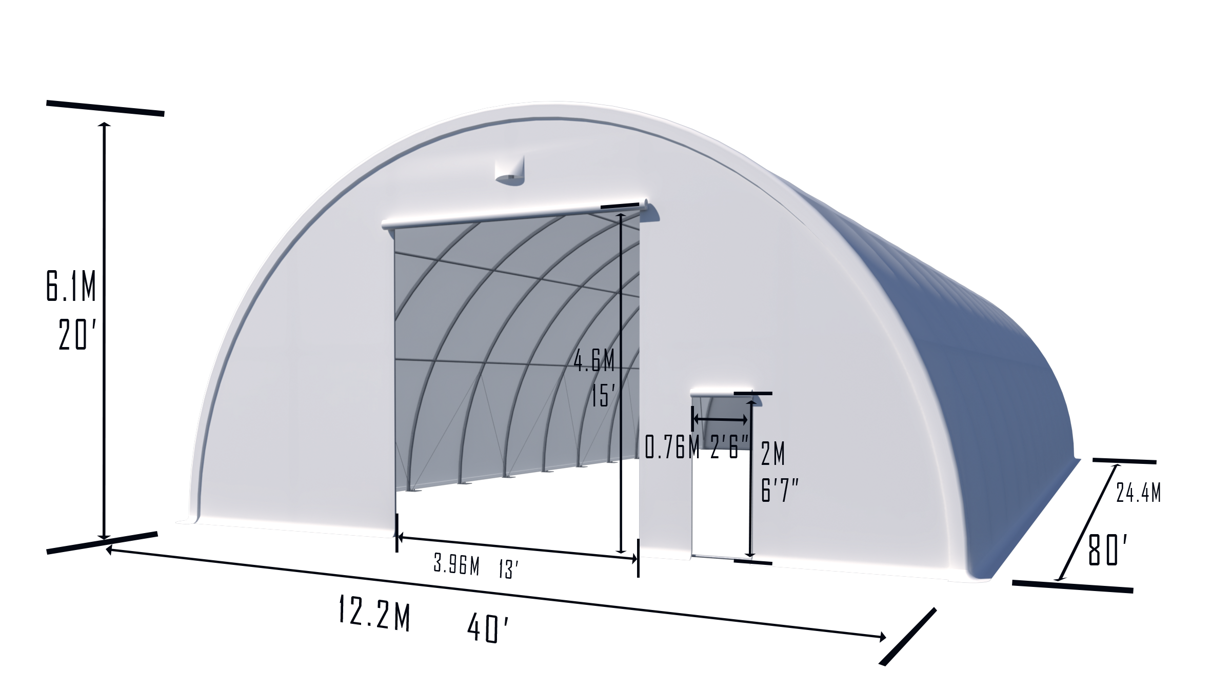 12.2m*24m*6.1m/40'*80'*20' |